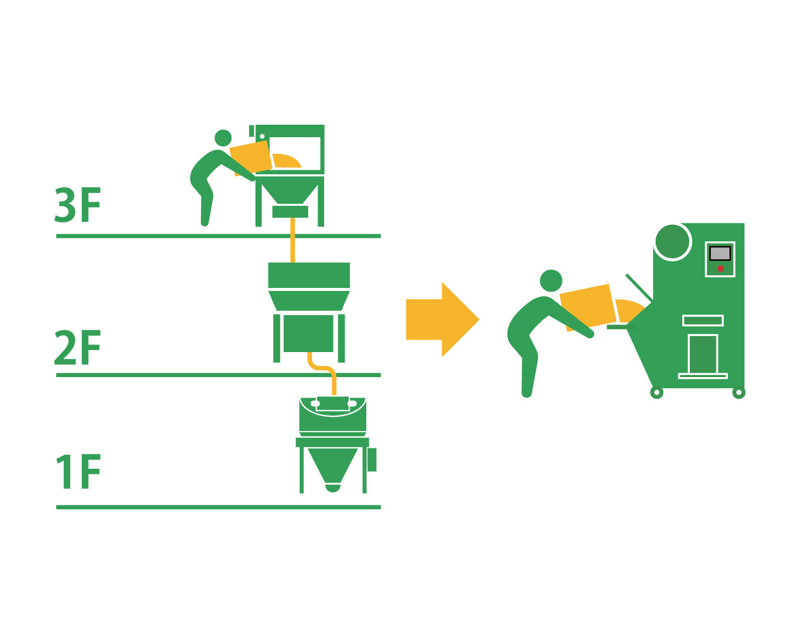 自動計量で1~3Fの設備を1フロアに集約