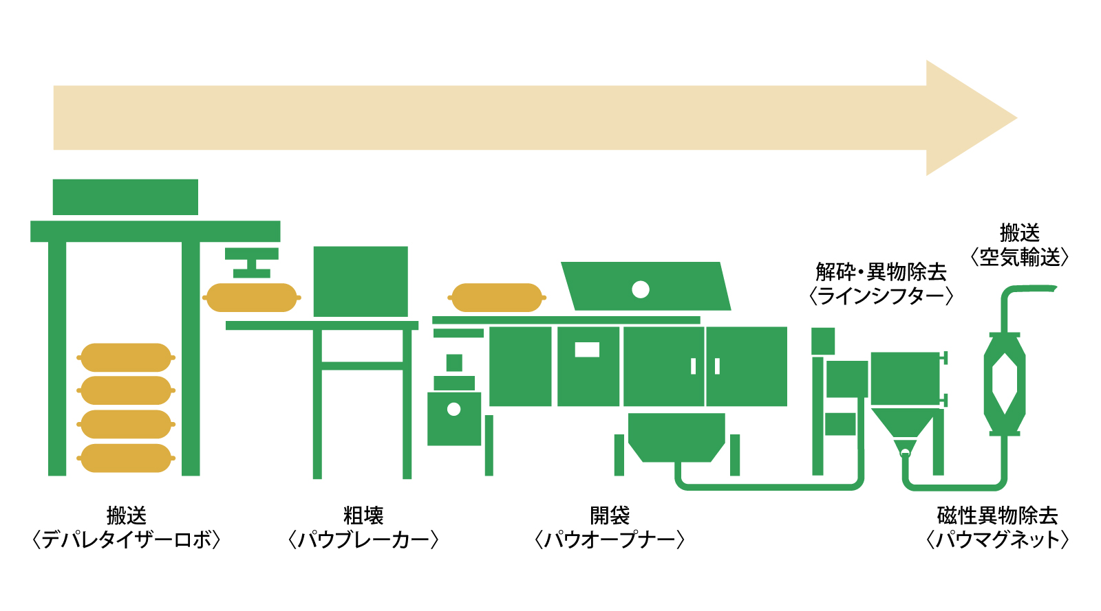 パウブレーカー(固化粉体粗壊機)を組み込んだ自動開袋給粉システム