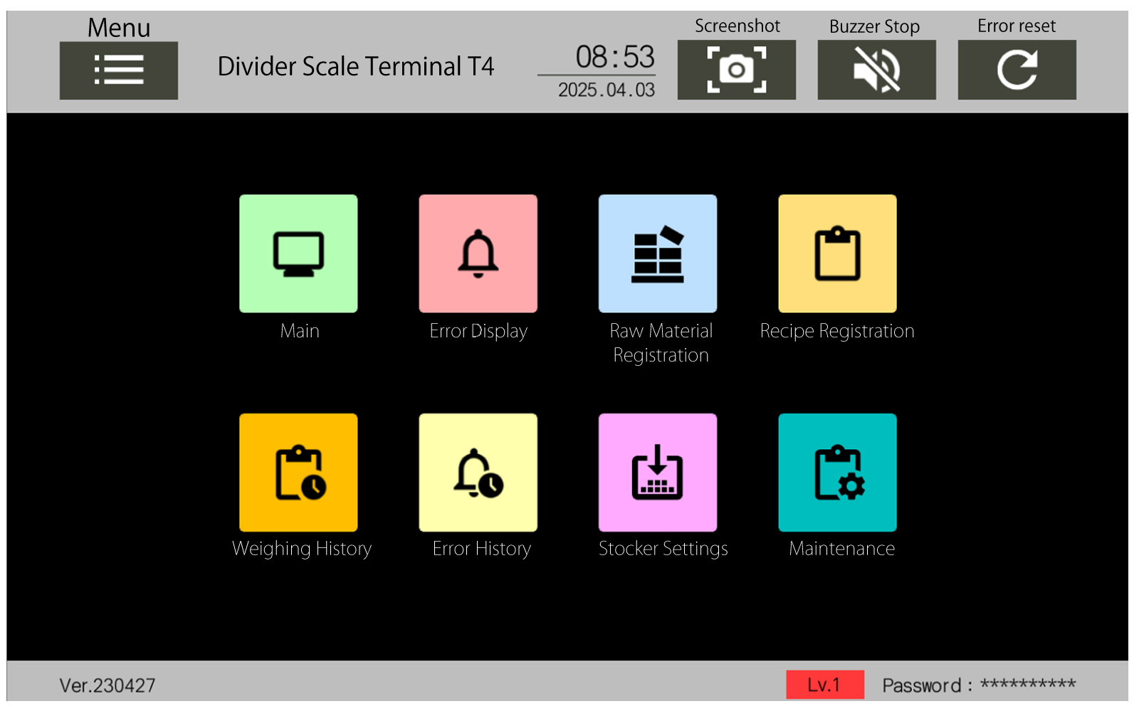 Selected “LEVEL 3” to prevent recipe information leakage. They established a system in which the on-site operator only operates the unit and cannot see the types of raw materials and recipe information.