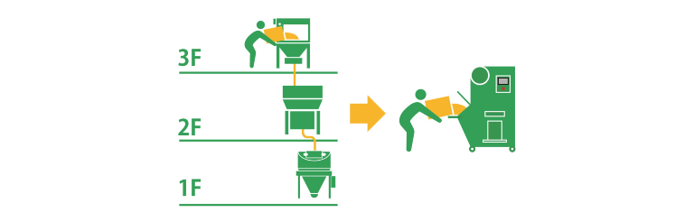 事例集:「自動計量で1~3Fの設備を1フロアに集約」
