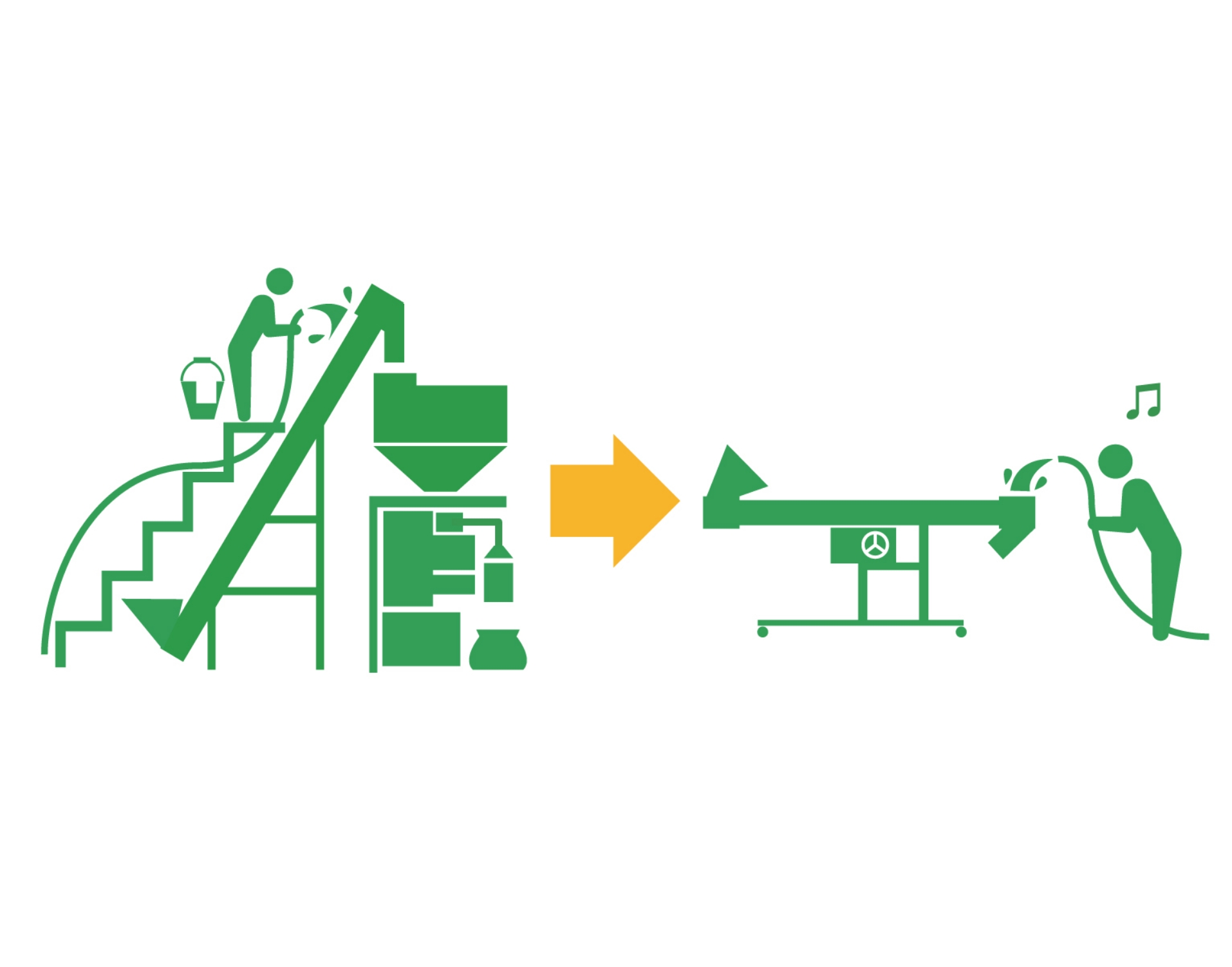 スクリューフィーダーの傾斜をハンドルで調整可能に