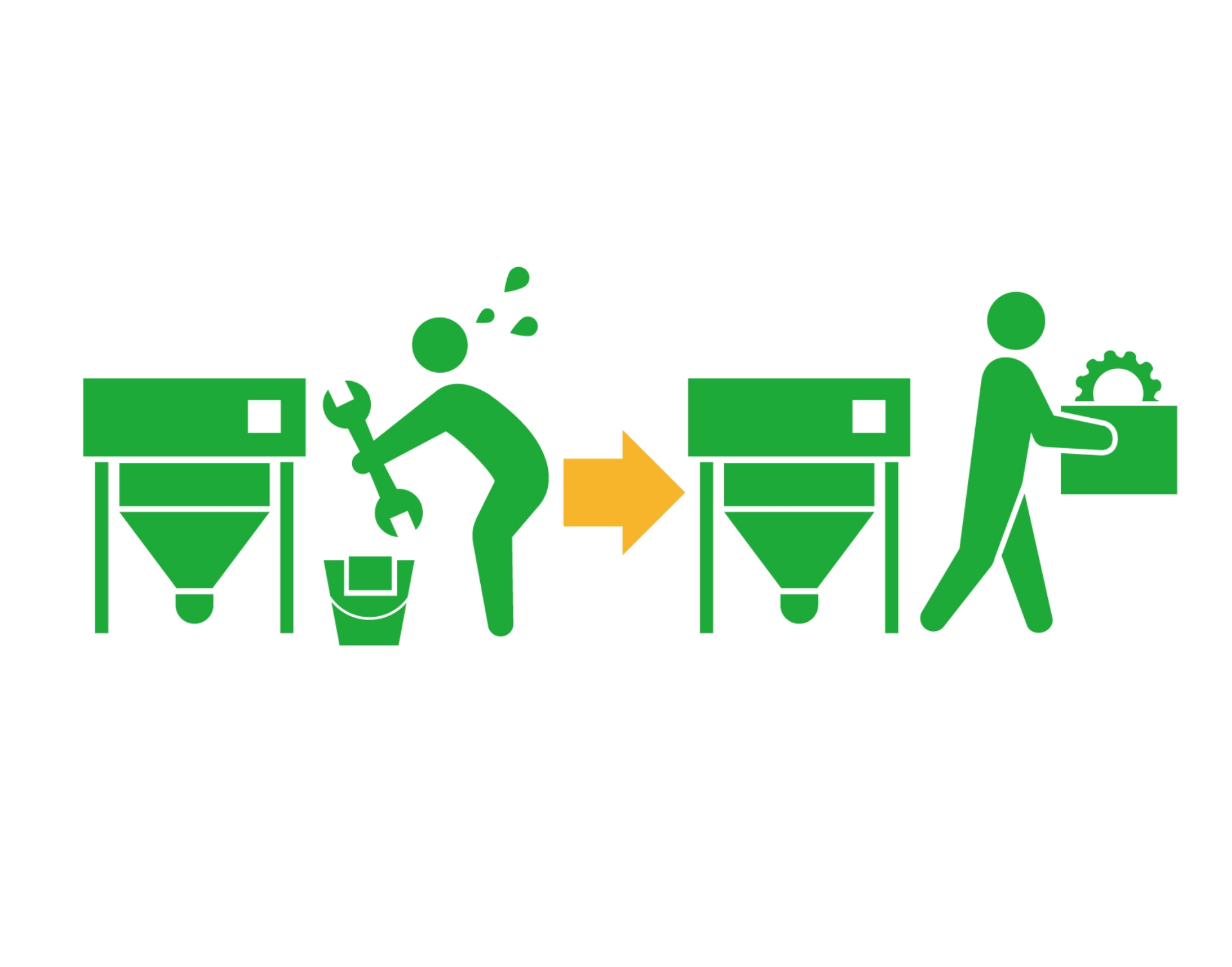 自動開袋機の工具レスでの分解&水洗浄を推進