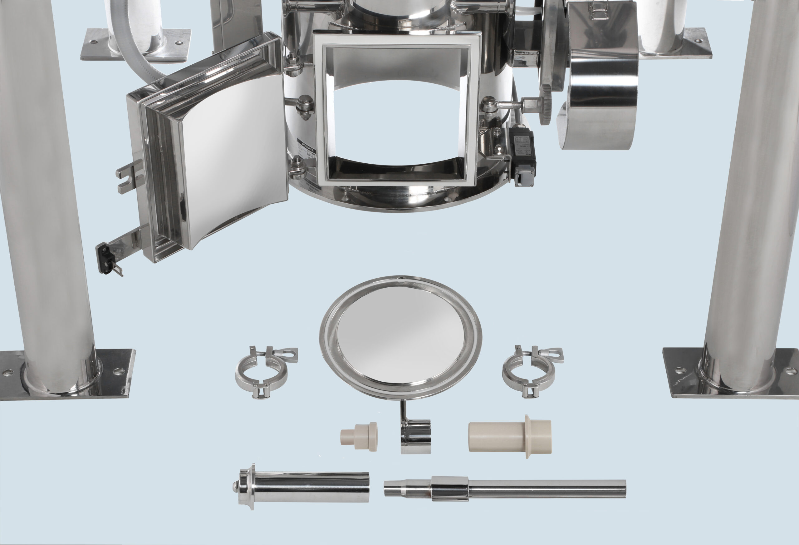 ミキサー底部がコニカル形状(円錐状)なので排出性が高く本体内への残留もわずかです。また、排出部には分解・清掃が容易なサニタリー型フラットバルブを採用しています。
