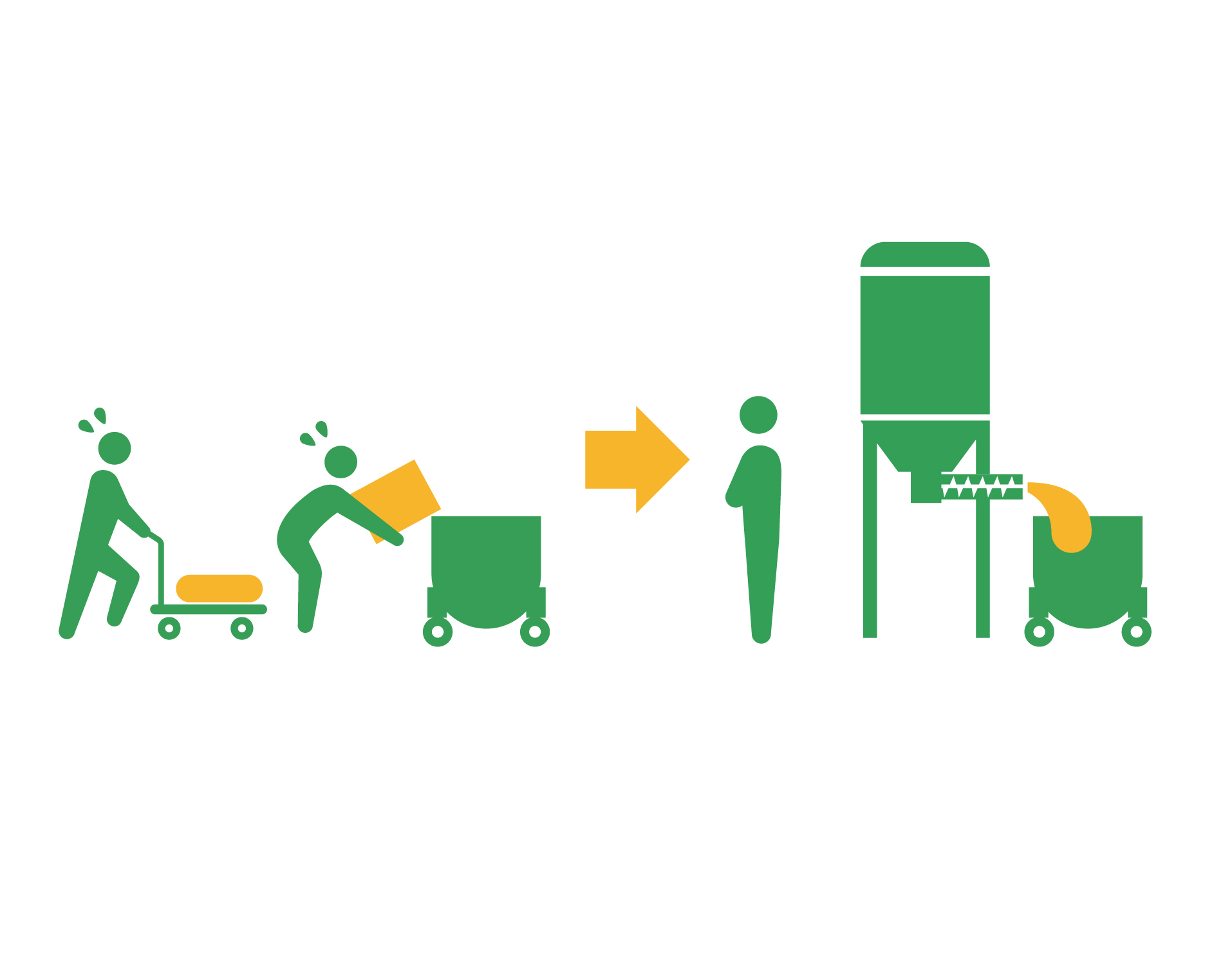 「自動化」で作業負担の軽減を【重たい粉袋の持ち上げ】