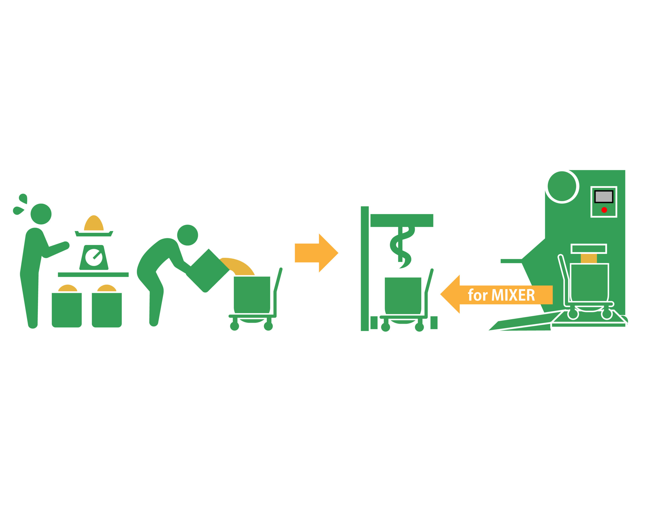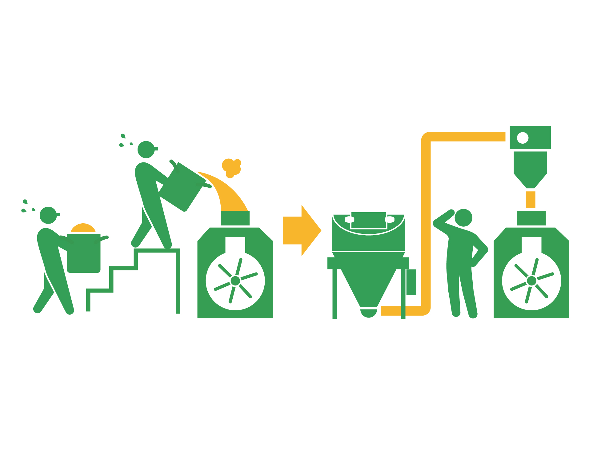 「自動化」で作業負担の軽減を【粉体の使用場所への搬送】