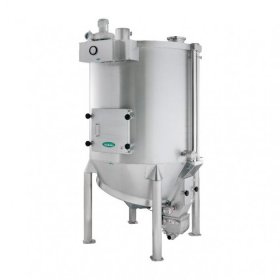 When discharging from the storage tank equipment through a hopper, an appropriate height is required depending on the hopper's angle. Therefore, if there is a restriction to the total height of the equipment (ceiling height inside the plant), there will be a decreased storage capacity relative to the restricted height of the storage tank's hopper.