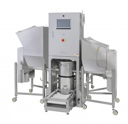 Only TSUKASA provides the automatic dividing and weighing equipment from which multiple stockers can be detached. It saves space in the factory because it is not necessary to transport containers on conveyors with multiple weighing machines side-by-side.