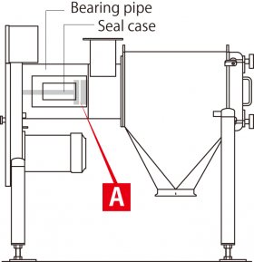 In the bearing pipe of the LINESIFTER or PowSifter, black shavings may be discharged under the seal case (A). These are shavings (wear) from the sealant caused by the rotation of the shaft. In order to prevent shavings from entering the bearing, TSUKASA has adopted a system to discharge the shavings into this location.
