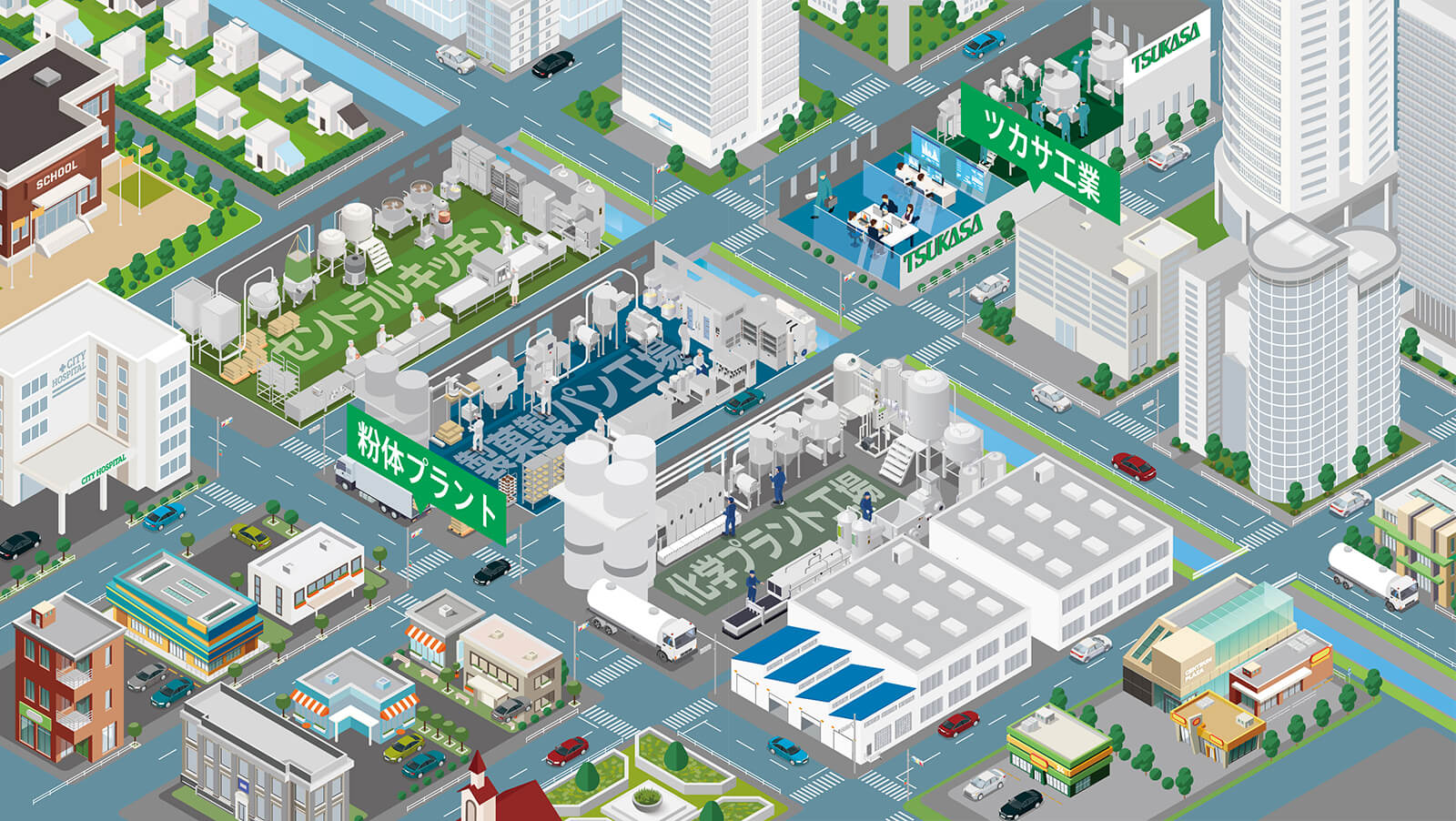 TSUKASAの粉体機器は幅広い産業分野の工場内で活用され、そこで生産された製品の数々は、人々のくらしの快適性や利便性を支え、現代生活の基盤を形づくっています。 不断のイノベーションから生まれた粉体機器の数々をお客様にご提供し、生産ラインのスムーズな稼働を見守り続けることが私たちの変わらぬ使命です。