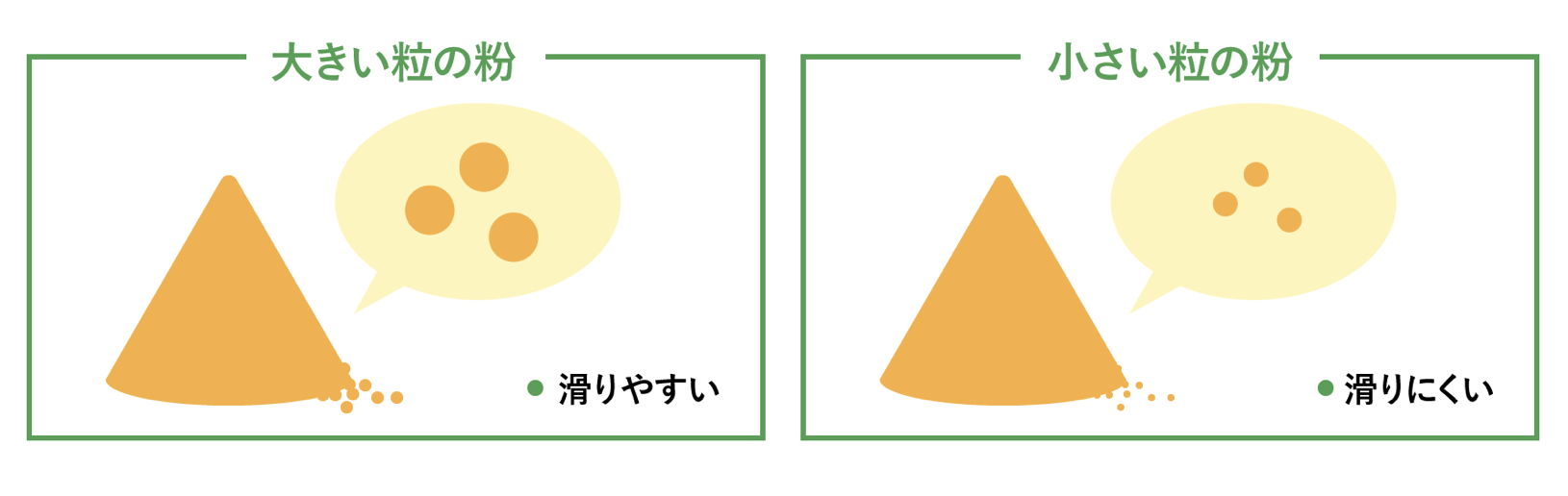 粉の粒の大きさによる特性