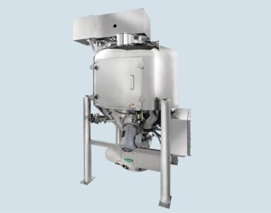 原料受入・供給工程原料袋の供給、開袋、空袋処理をワンユニット化したシステムの試験を行います。