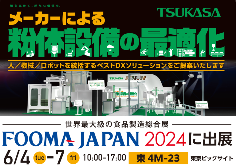 開催期間中はツカサ工業展示ブースにおいて「粉体設備の最適化」をテーマに、各種機器の展示や実機デモなどを行います。また開催期間にご来場できない方も、展示ブースからのライブ配信をお楽しみください。弊社営業担当が展示機器の数々をライブ映像とともにご説明します。ツカサ工業webサイトの「展示会ライブ」ゾーンよりお気軽にご参加ください。