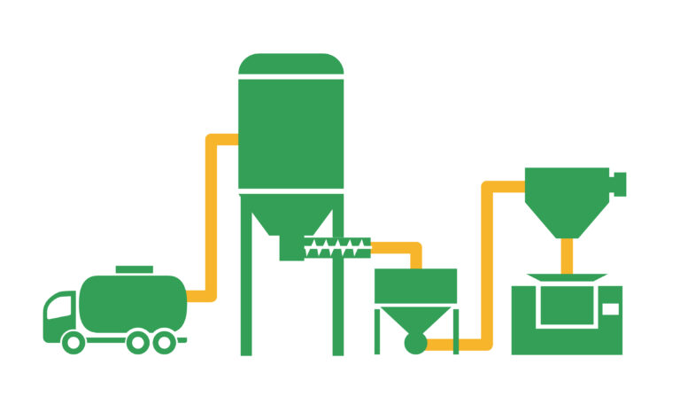 ストックした粉体原料を計量して次工程に送るための主要2方式。複数ミキサーにもすばやく供給できる「自重落下計量」、省スペースで導入コストも削減できる「吸引計量」についてご紹介します。