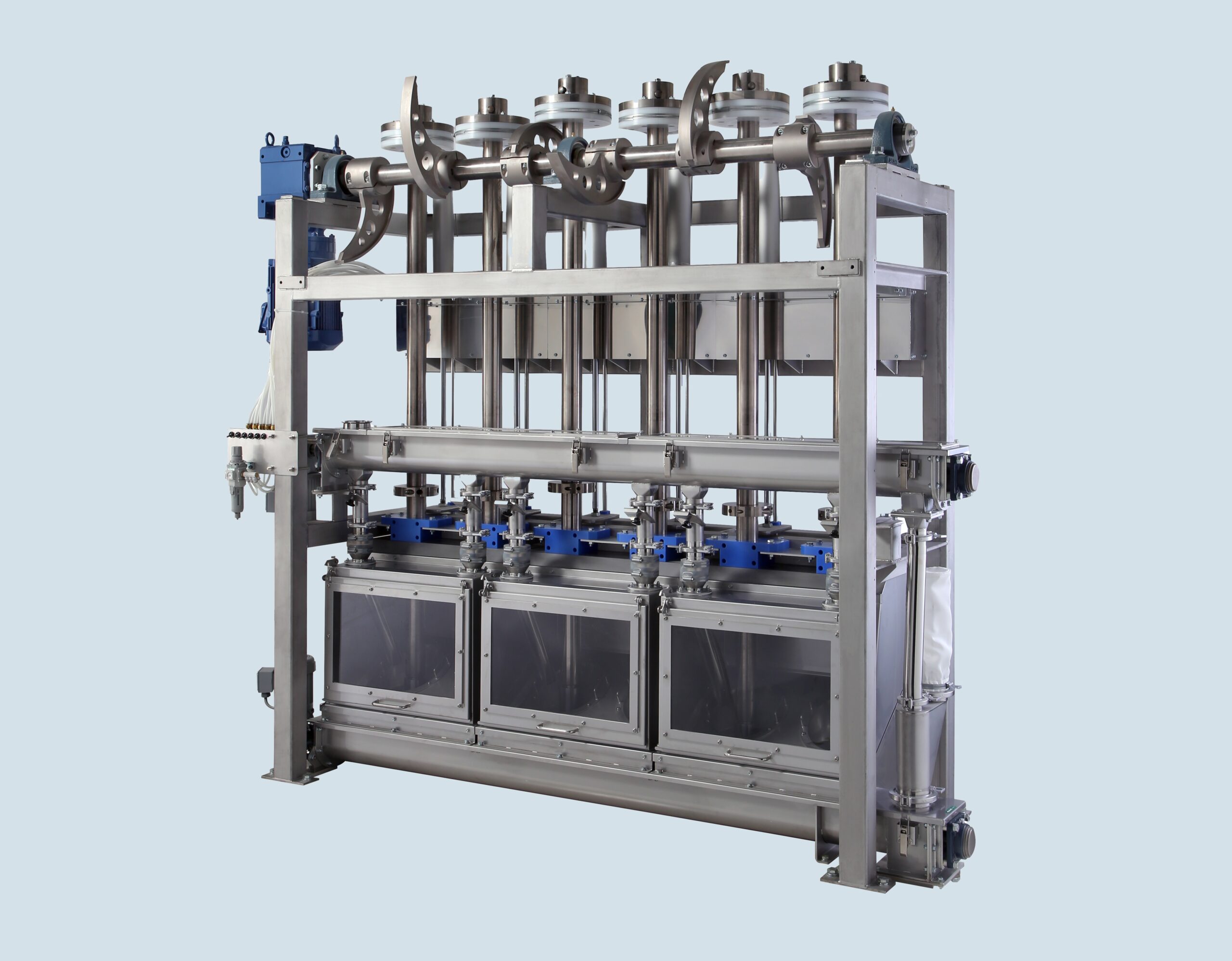 独自の撹拌パドル設計により、原料のプレミックスが可能な手切込み装置MORE >