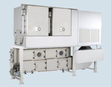 集塵機が一体となったコンパクトな流動乾燥機