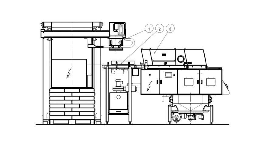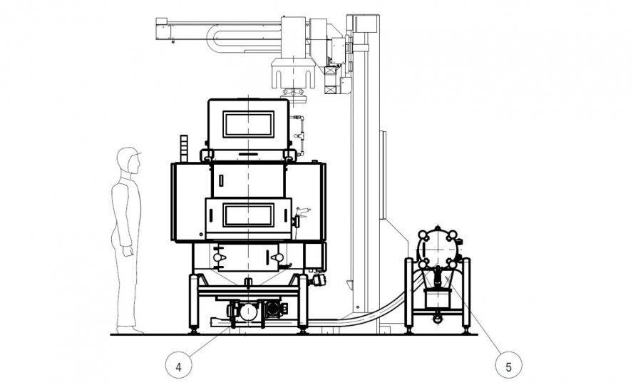 原料の入った袋はベルトコンベヤにより自動投入されます。