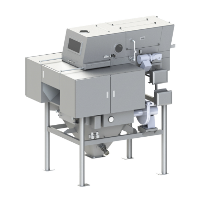 ⚫︎特殊開袋機構で最大200袋/hの処理能力、原料回収率99.9%を実現。(内容物原料・袋形状・能力により異なります)