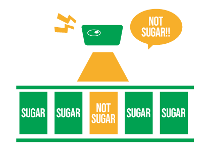 原料袋表面のデザインを3Dビジョンカメラで画像認識して誤投入を防止。