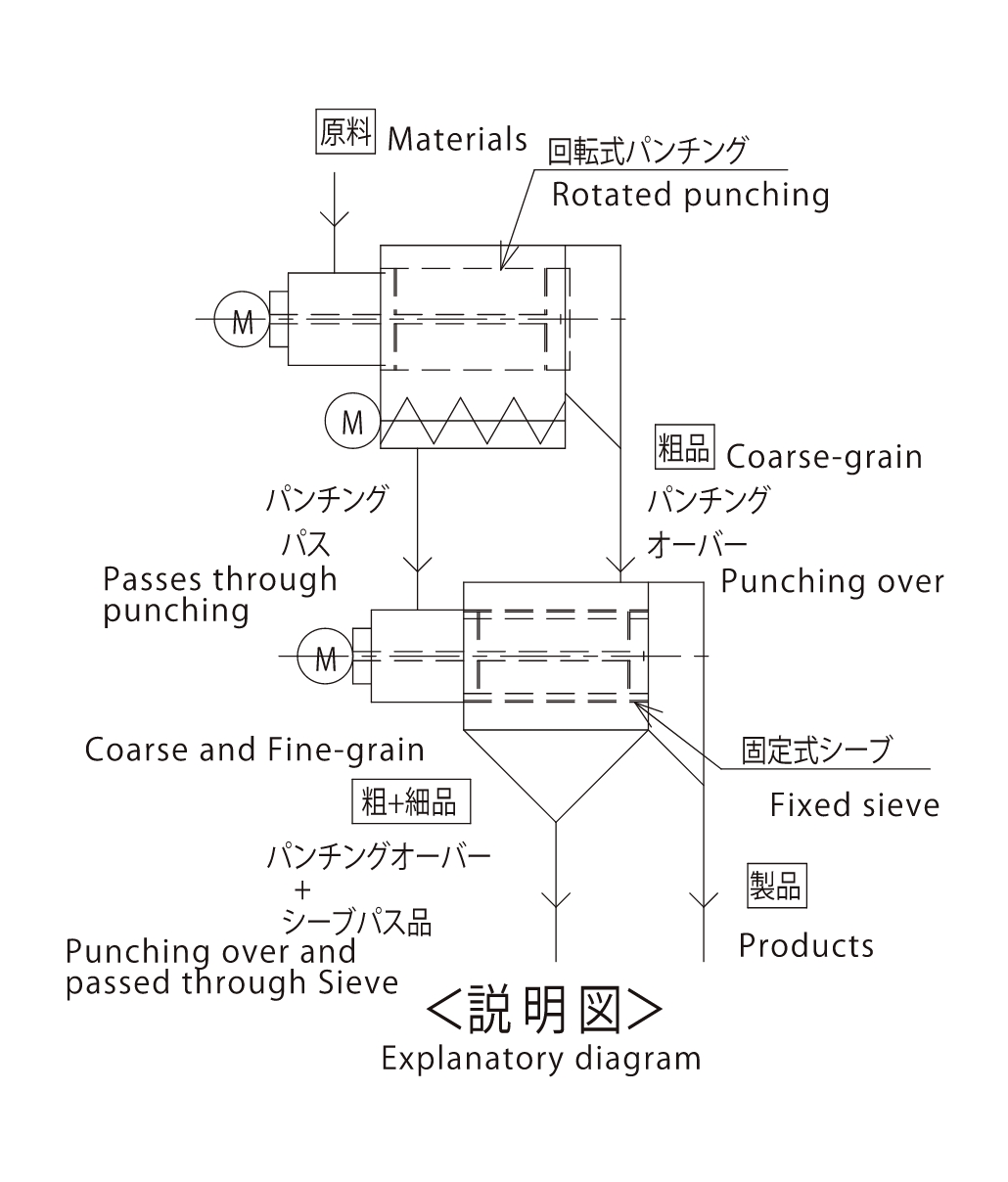 ふるい分け・異物除去工程高効率なふるい分け・異物除去が可能 高効率なふるい分け・異物除去が可能 この工程をイラスト図解 ふるい機 パウシフター・三種ふるい型(PSF-SPW) シュート輸送経路に設置する三種分級が可能なふるい装置 細粒品とオーバー品をわけて排出可能 特長 ⚫︎円筒構造を採用し、高速回転するビーター(羽根)で、原料を篩過。 ⚫︎造粒品などに含まれる微粉末や過大品の除去に最適。 ⚫︎パウシフターをコンパクトに二段積みした省スペース設計。 ⚫︎一段目シフターに内蔵されたスクリューフィーダーにより、一段目パス品は二段目シフターに定量供給されるため、安定したふるい分けを実現。 ⚫︎シーブの点検、交換が容易。 ⚫︎振動が極めて少ない超低音設計。 オプション 水洗浄仕様 一覧に戻る