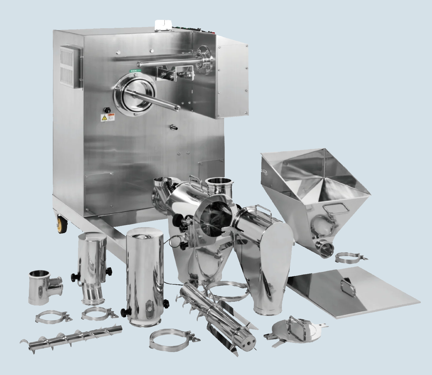 ふるい分け・異物除去工程高効率なふるい分け・異物除去が可能 高効率なふるい分け・異物除去が可能 この工程をイラスト図解 ふるい機 パウシフター・特殊仕様(PSF-15/25 GMP型) 医薬品や多品種の素材の研究開発試作に最適な特殊仕様 2種類分級使用時外観 分解写真 特長 ⚫︎円筒構造を採用し、高速回転するビーター(羽根)で、原料を篩過。 ⚫︎ケーシング、内部の構成部分が分解可能な為、医薬品や少量多品種の素材の研究開発試作に最適。 ⚫︎シーブの点検、交換が容易。 ⚫︎振動が極めて少ない超低音設計。 一覧に戻る