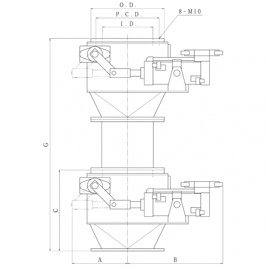 バルブ&配管部品互換性に優れた多種多様なバルブ・配管部品 互換性に優れた多種多様なバルブ・配管部品 この工程をイラスト図解 粉粒体用フラップゲート パウゲートフラップ・ダブル(PGF-W) 用途 よりシール性を要求する排出用、連続供給を必要とする排出用、サイクロン排出用。 仕様 ⚫︎材質:接粉部ステンレス、スチール ⚫︎外面標準色:スチール部…N9(ホワイト) ⚫︎シリンダーエアー圧:0.4~0.6MPa ⚫︎標準装備:エアーシリンダー、電磁弁、手動ボタン、シリンダースイッチ ⚫︎シール材:EPDM白 図面・寸法 ご用命の際は下記項目をご連絡ください。 1. 型式 2. 電磁弁の仕様 3. シリンダースイッチの電圧及び数 4. 搬送物(粉体.粒体) 5. 作動頻度 一覧に戻る